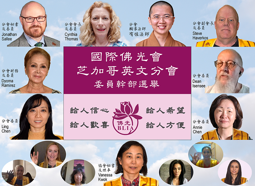 10月10日,國際佛光會芝加哥協會眾緣成就,經過了一年多的籌備,首次成立分會,更一次性拓展為4個分會。在新冠疫情的特殊時期,運用現代科技,在線上同時開啟6個會議窗口,超過100位佛光會員在短短數分鐘內完成投票、統計、唱票等環節,成功選舉出各分會會長:陳林釆菱、許標金、杜堡惜、 Cindy Thomas,及各分會副會長與委員。會員大眾共同見證歷史時刻,開創嶄新篇章。