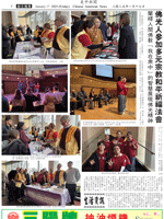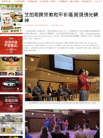 1月5日下午,芝加哥禪淨中心妙偉法師率佛光會會員與佛光青年分團共20人,參加北中大學舉辦的「多元宗教世界和平祈福法會」。活動以「Overcoming Fear By Fostering Unity in Our Diversity」為主題,共有23個宗教與族裔團體、超過300人參與,芝加哥禪淨中心為唯一佛教代表。