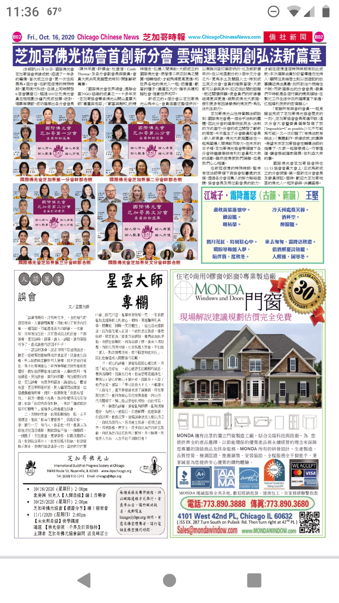 10月10日,國際佛光會芝加哥協會眾緣成就,經過了一年多的籌備,首次成立分會,更一次性拓展為4個分會。在新冠疫情的特殊時期,運用現代科技,在線上同時開啟6個會議窗口,超過100位佛光會員在短短數分鐘內完成投票、統計、唱票等環節,成功選舉出各分會會長:陳林釆菱、許標金、杜堡惜、 Cindy Thomas,及各分會副會長與委員。會員大眾共同見證歷史時刻,開創嶄新篇章。