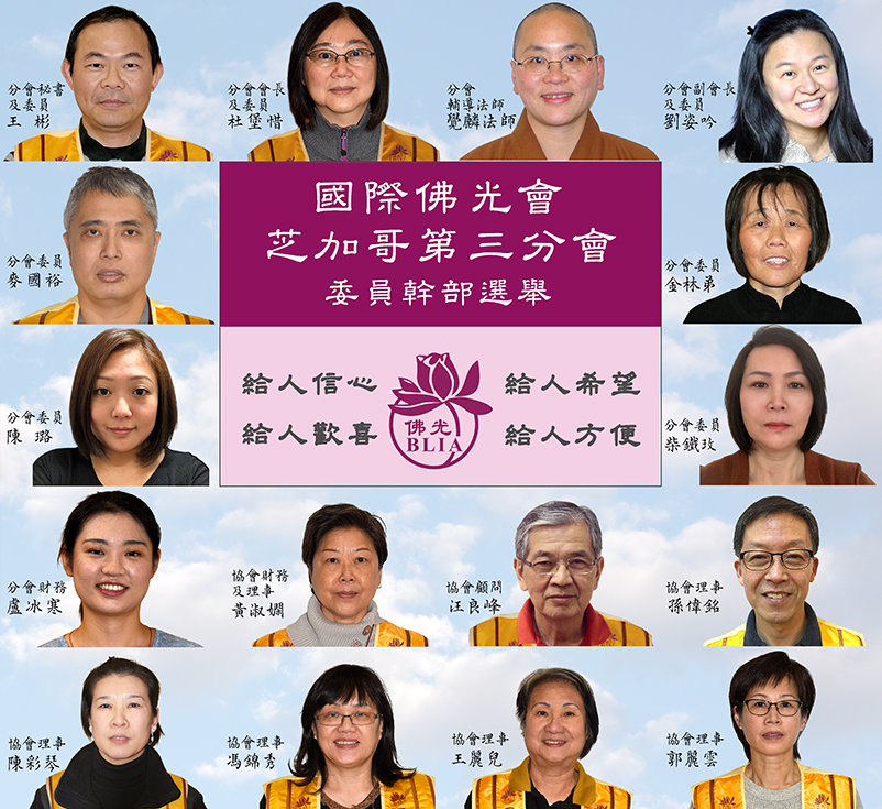 新成立的4個分會以芝加哥佛光山為中心,會員涵蓋近整個伊洲,以東跨洲至印第安納洲,北及威斯康辛洲。在以地區劃分的3個中文分會之外,更為本土及雙語人士,特別成立英文分會。會員的婚喪喜慶,大家都可以參與其中;拉近彼此間的距離,就近關懷照顧。使會員們的好緣善結得更深更遠,凝聚成佛光大家庭,接引更多有因緣學佛的佛友們,為弘法利生助力。