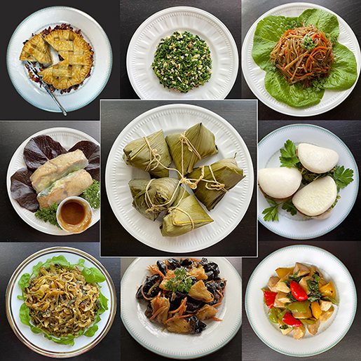 芝加哥佛光協會周邁平會長分享:茹素不僅是為了健康環保,更重要的是如佛光山開山星雲大師所?的「吃素是為了培養我們的慈悲心」。素粽和超過二十道的素食都是遵從佛光山叢林料理,原汁原味的將「菜根香」供養大眾!義工菩薩們用恭敬心、平等心和歡喜心來料理,包裝食物跟大眾結緣。
