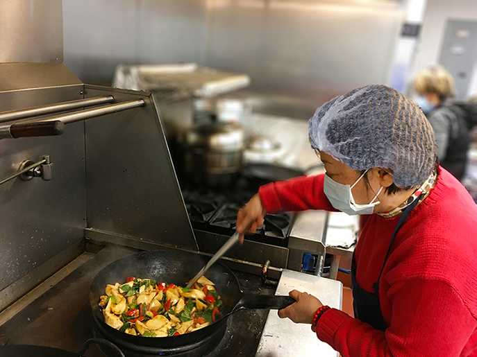 「戒殺吃素,止息疫情」芝加哥佛光山住持覺麟法師開示:「施者受者,等無差別」。謝謝大家的支持,我們在素食烹飪上,大大的增加信心。大家真的?蔬食A計畫,實際的付出行動。住持親自帶領義工們設計每週推出的菜單,監寺有恆法師則成功推出了蘋果派、蝴蝶酥等特色糕點,受到廣泛好評。