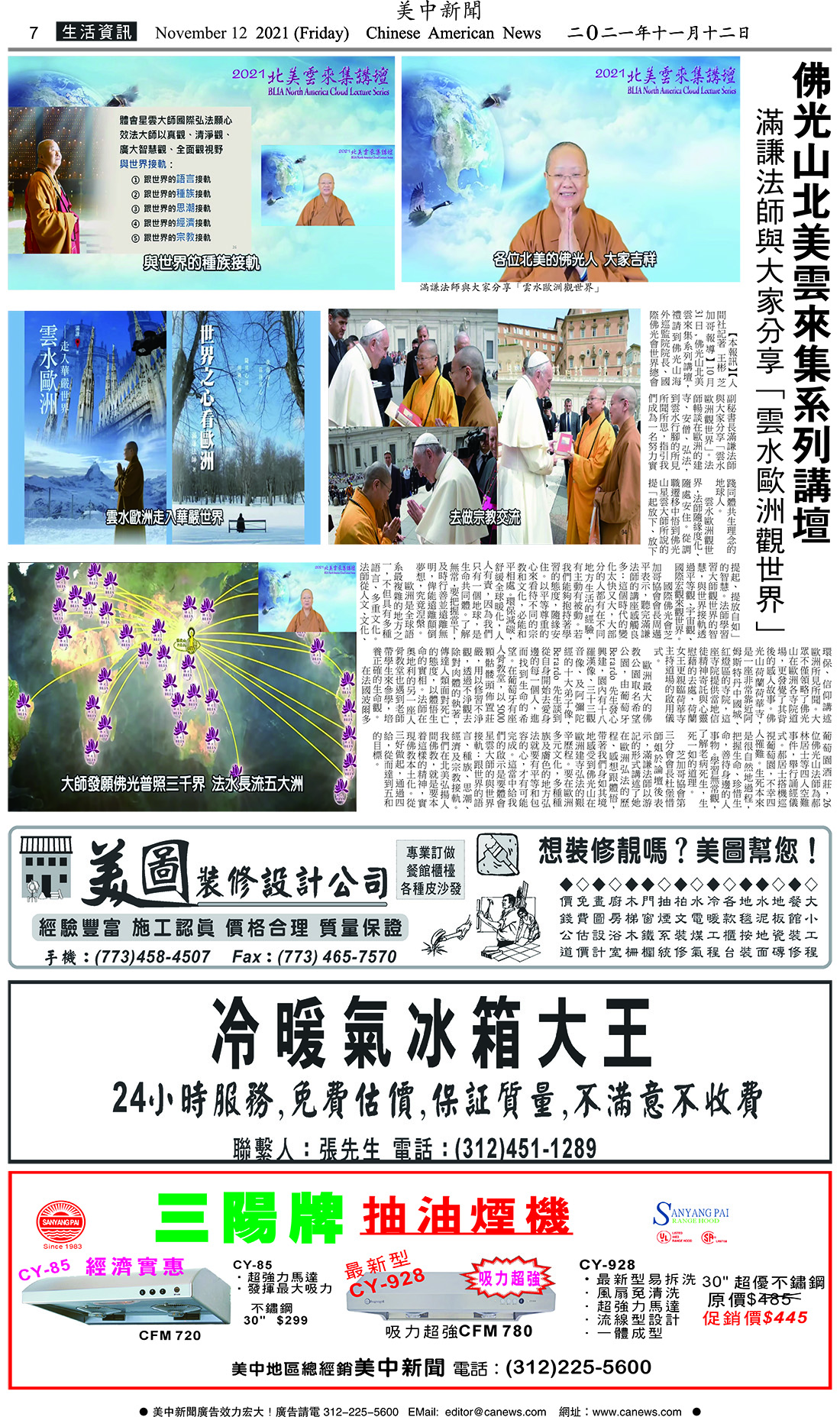 【人間社記著 王彬 芝加哥報導】10月31日,佛光山北美雲來集系列講壇,禮請到佛光山海外巡監院院長、國際佛光會世界總會副秘書長滿謙法師與大家分享「雲水歐洲觀世界」。法師暢談在歐洲的建寺、安僧、弘法,到雲水行腳的所見所聞所思,指引我們成為一名努力實踐同體共生理念的地球人。
