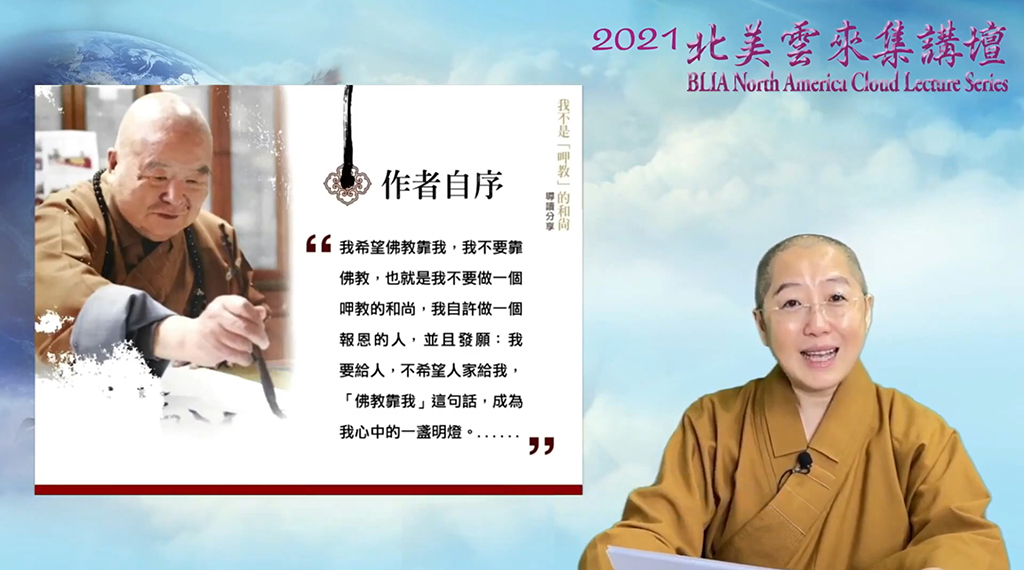 2021北美雲來集講壇最後一場壓軸講座於12月26日線上舉行,禮請國際佛光會世界總會秘書長覺培法師,以「佛教靠我──閲讀《我不是呷教的和尚》之啓示」為題,在雲端與逾500位佛光人分享她閲讀本書的心得體會。雲來集講壇今年共舉辦了十五場中英文講座,總計有65,000人同沾法喜,共享法義。