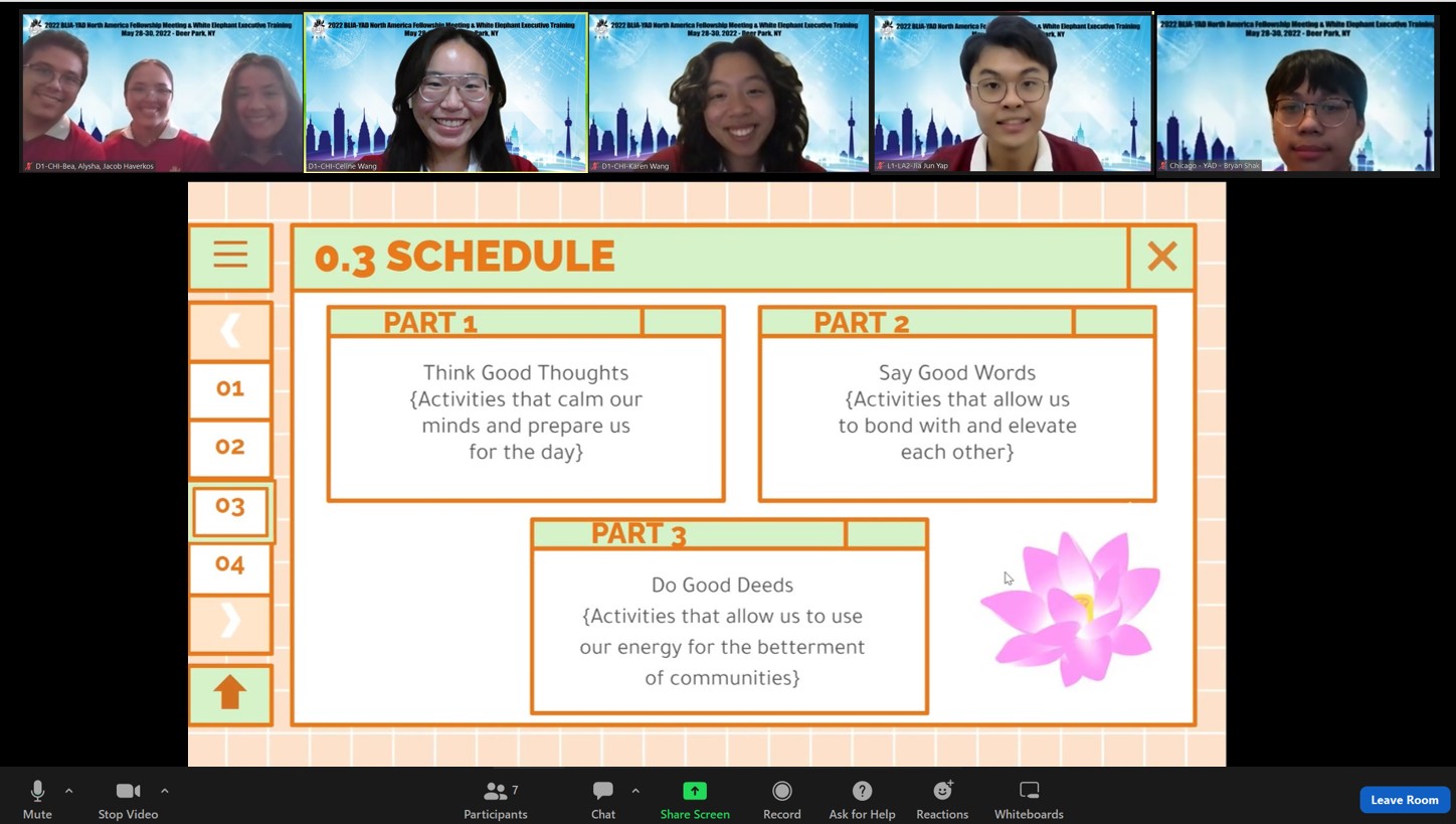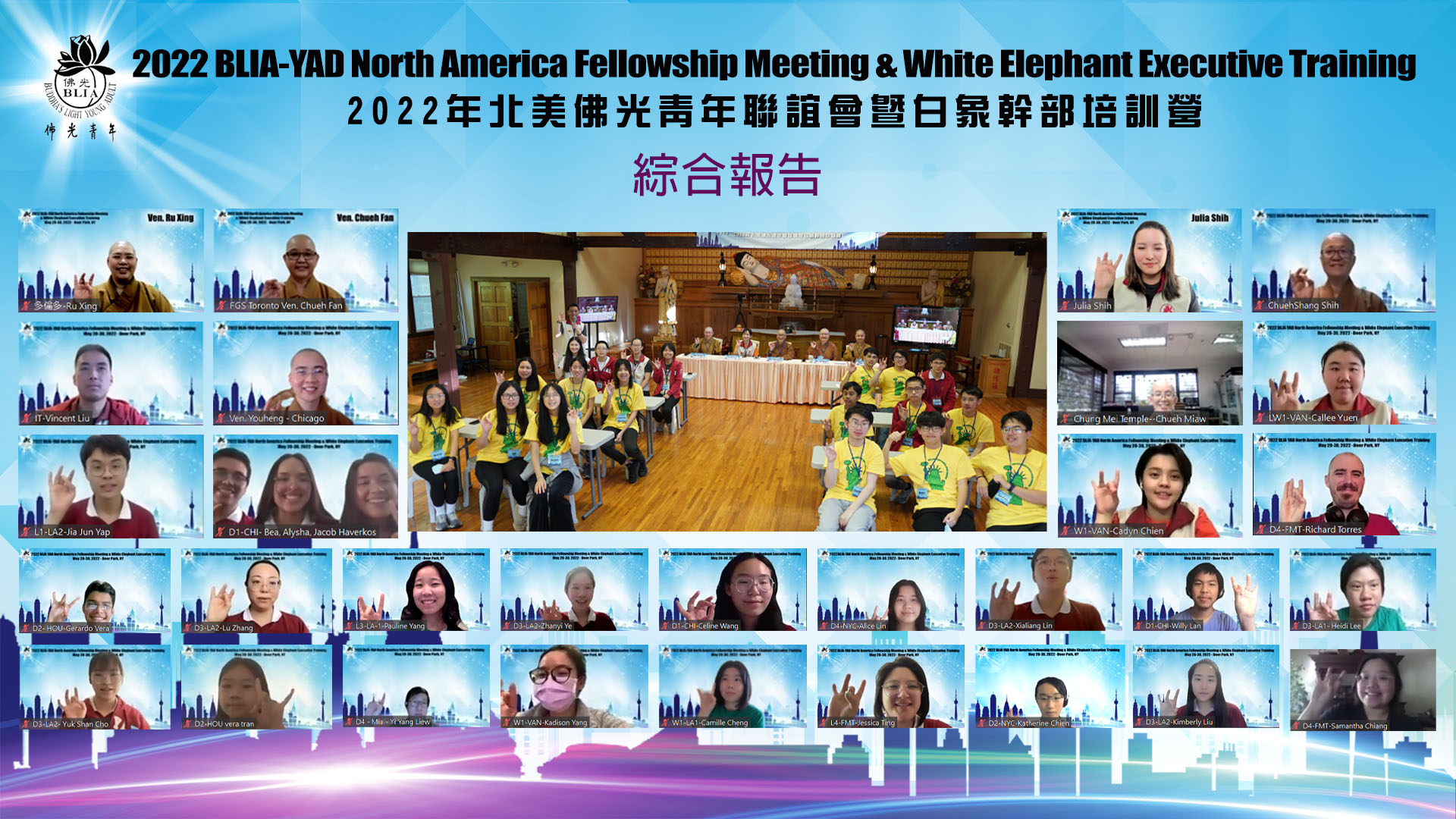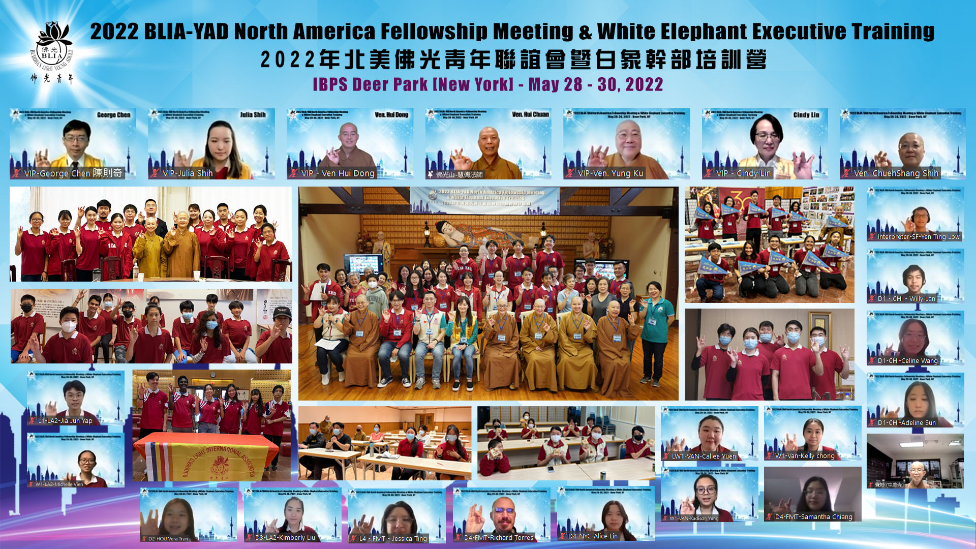 5月28日至30日,紐約佛光青年分團假佛光山鹿野苑,承辦三天兩夜的「2022年北美佛光青年聯誼會暨白象幹部培訓營」。聯誼會以佛光山紐約鹿野苑為實體主場,芝加哥的14位佛青與來自16個佛光青年分團的團員,於各北美道場同步連線,總計150餘名青年,線上線下一起參加。希望透過此次培訓,讓參與者能更深入的了解佛光青年分團及白象幹部的意義和使命,訓練佛光青年的團隊精神。