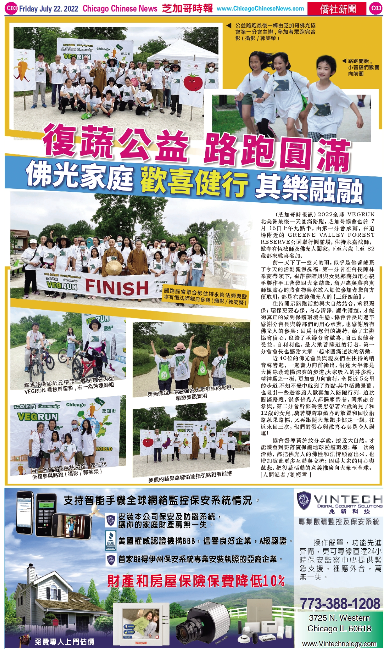 芝加哥圓滿公益復蔬路跑 佛光人攜家帶眷 響應環保與心保 閤家参與樂融融