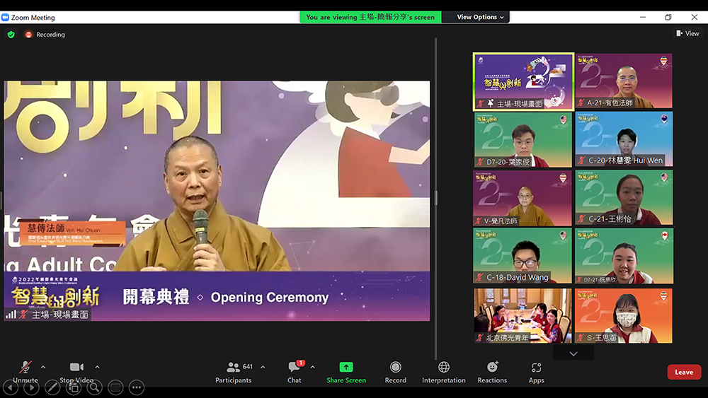 國際佛光會世界佛光青年總團執行長慧傳法師於開幕時表示,青年團成立已邁入25年,星雲大師自1997年頒發23個青年分團證書,至今已有236個青年分團成立,並分布全世界各地。慧傳法師並強調說,青年分團的重要性,如同大樹樹根的深度與廣度,造就了樹的高度與枝葉繁茂的程度,亦如人間佛教照顧眾生的幅員越來越大,鼓勵青年加入幹部的行列,一同將創辦人星雲大師的理念推廣出去、信仰傳承,讓佛光普照三千界、法水長流五大洲。