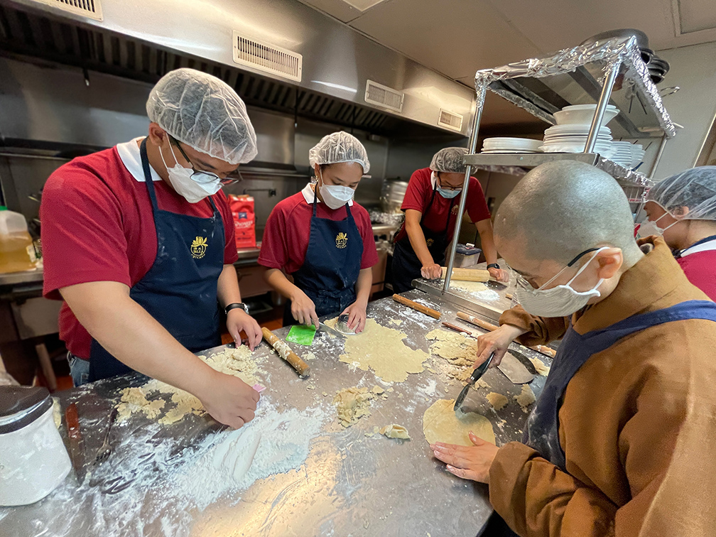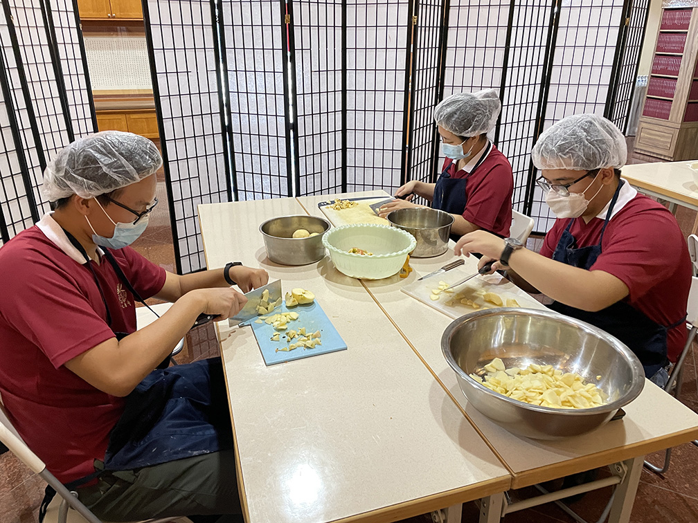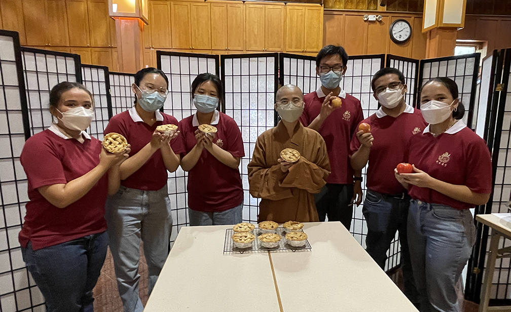 為籌備明年台灣之旅,芝加哥佛光青年分團成員們於7月23日製作蘋果派義賣。 從海報設計,銷售,製作,品管等,團員們的熱情參與,獲得了120多個訂單!當天一早,大家齊聚於佛堂,在監寺 有恆法師的帶領下,井然有序的開始工作,每人都穿戴口罩,圍裙和頭套,以確保產品的品質衛生與安全。在團員們快樂的合作,歡喜的笑聲中,一個個香噴噴的蘋果派,出爐啦!以愛心和歡樂,製成的蘋果派,香甜可口,大受歡迎。團結,快樂,興奮的芝加哥佛光青年分團,圓滿了第一次的蘋果派義賣活動!