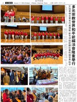 芝加哥佛光青年代表佛教,新年伊始祈願世界和平。1月7日芝加哥佛光山作為唯一佛教代表,與天主教、基督教、伊斯蘭教、猶太教、印度教、錫克教、巴哈伊教、北中大學、一神論教會等20多個不同宗教族裔團體共同舉辦「多元宗教世界和平祈福法會」,超過350人齊聚一堂,共襄盛舉。