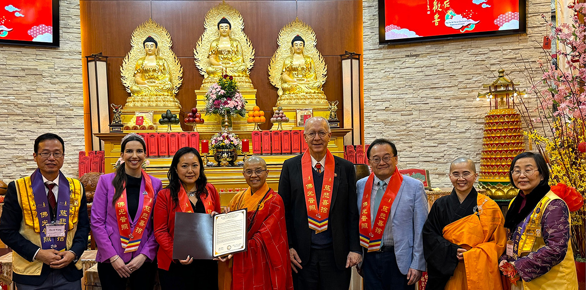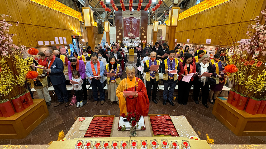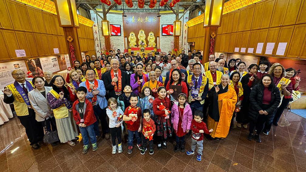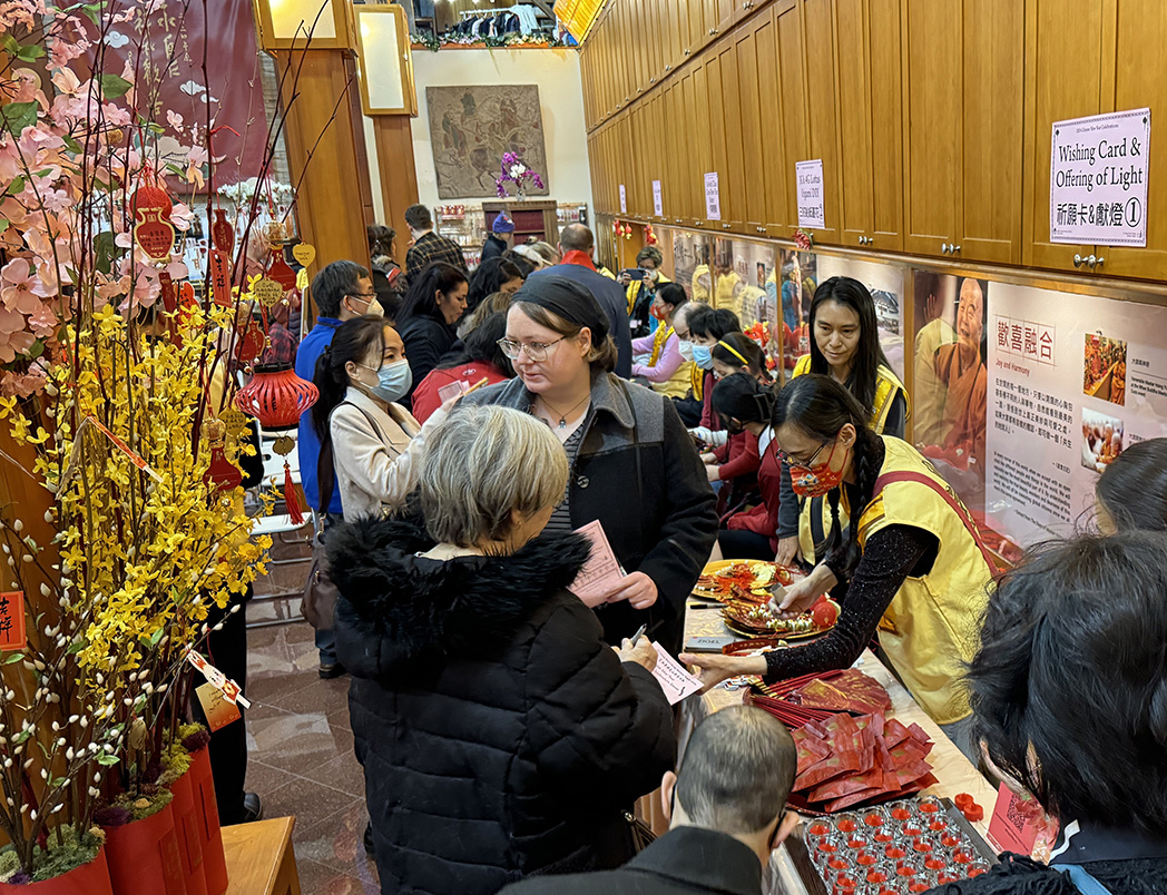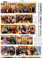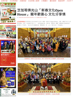 芝加哥佛光山於2月10日大年初一舉辦「新春文化Open House」活動。廣邀不同文化背景的鄰居、信眾,近250位中西人士,一起到道場走春、燒年香、賀新春;觀賞「緬懷開山祖師星雲大師 雲水三千特展」,並以全英文唱誦祈福,期盼新的一年,人人「雲水自在.祥和歡喜」。