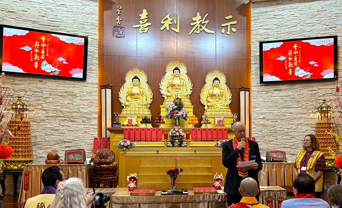 州眾議員楊啟華(Janet Yang Rohr)表示農曆新年的文化與歷史意義非凡,感謝道場以文化創新與社區生活融合;州議會第103屆議期通過將農曆新年列入伊利諾州重要節日,很高興將證書頒給芝加哥佛光山。駐芝加哥台北經濟文化辦事處副處長李唯誠很高興有因緣受邀參加活動,讚嘆佛光山在全球各地致力推廣文化與教育、淨化人心,促進社會和諧績效顯著。