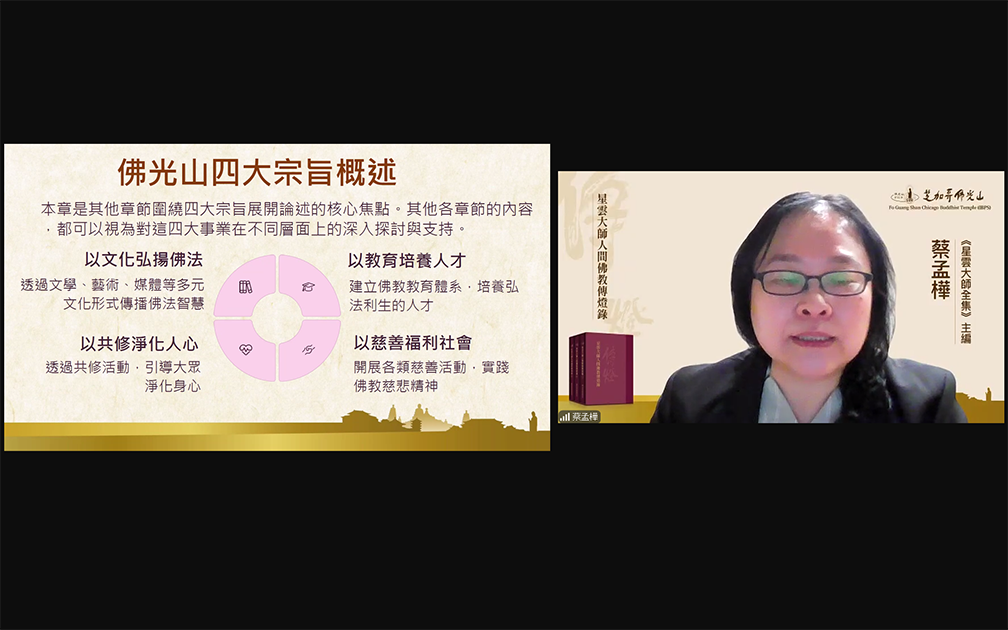 芝加哥佛光山舉辦的《星雲大師人間佛教傳燈錄》專題講座,第二場已於6月20日線上圓滿舉行。本場講座由《星雲大師全集》主編蔡孟樺居士與《佛光大藏經.史傳藏》編委妙主法師擔綱主講,芝加哥佛光山住持永瀚法師主持,吸引來自北美、夏威夷及中國等地逾百位佛光人參與,共霑法喜。