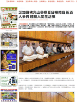 芝加哥佛光山於今夏開辦三場「夏日禪修班」,並於8月24日舉行「半日禪」修持。大眾透過坐香、行香及戶外禪修,放鬆身心,練習「讓身心回到當下」的修行智慧。在住持永瀚法師引領下,學習如何將「人間生活禪」落實於日常生活,四次課程吸引近百位中英文學員參與,並設有即席翻譯。