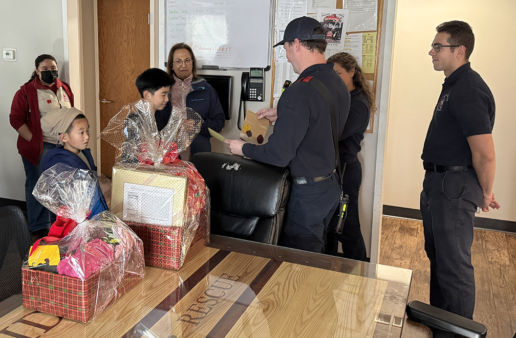 11月23日在美國感恩節前夕,佛光山芝加哥禪淨中心與國際佛光會芝加哥協會特別安排關懷活動,由英文分會會長Lauren Pittelli率領佛光三好學員、家長與佛光青年,一行10人前往Woodridge市警察局與消防局,致贈由孩子們親手製作的祝福卡片與感恩節禮籃,向第一線維安與救災人員表達最誠摯的謝意。