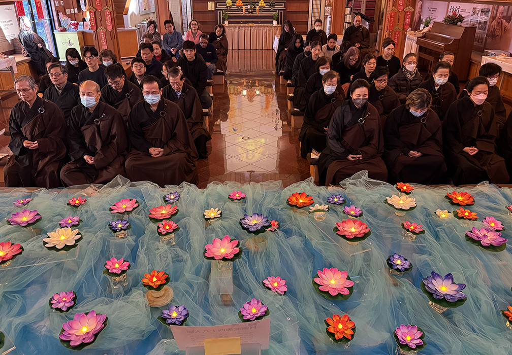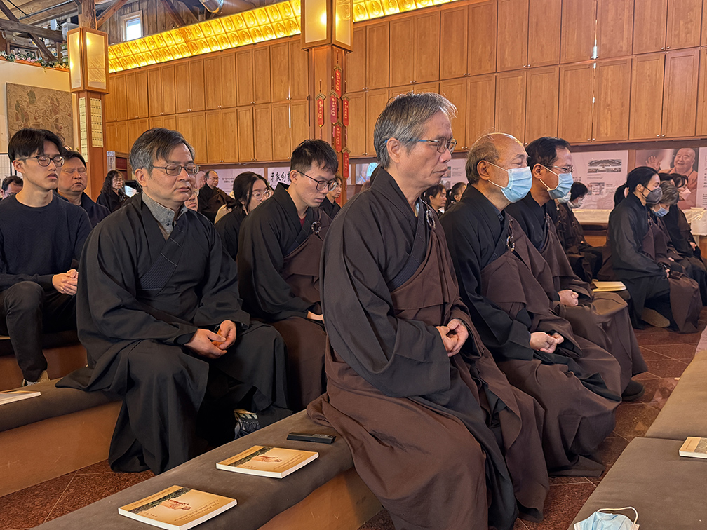 為迎接此殊勝日,義工們用心佈置壇場,懸掛星雲大師墨寶阿彌陀佛幡旗,設置蓮花池。法會中,大眾諷誦《阿彌陀經》,配合禪坐與自由調念佛,專注於阿彌陀佛聖號,體驗淨土法門的攝心清淨之樂。