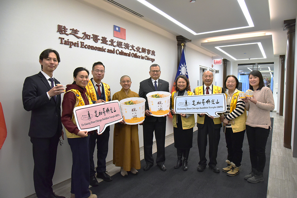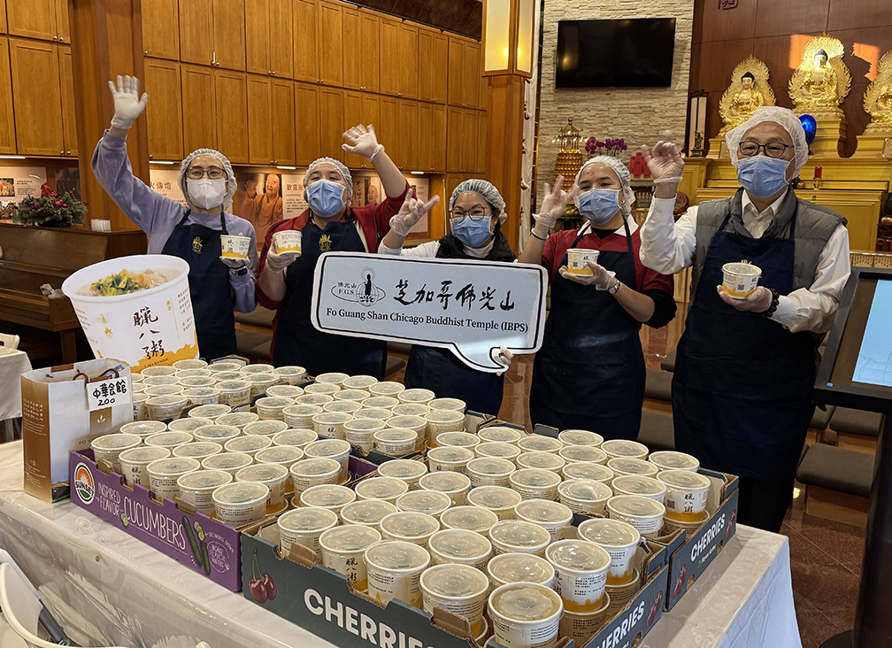 1月17日,近50位義工共同圓滿600餘份臘八粥,其中130份送往芝加哥5所越南寺院,展現宗教間的尊重與融合,並拜會僑教中心新任主任雷棋與副主任陳怡珍,介紹人間佛教理念。